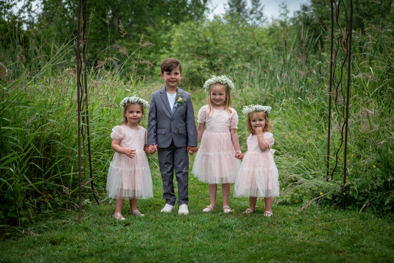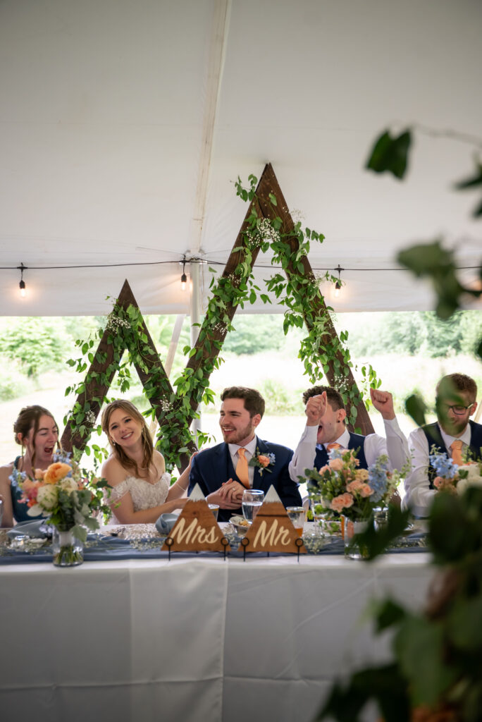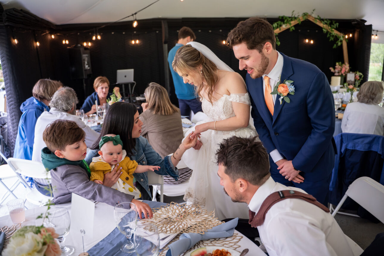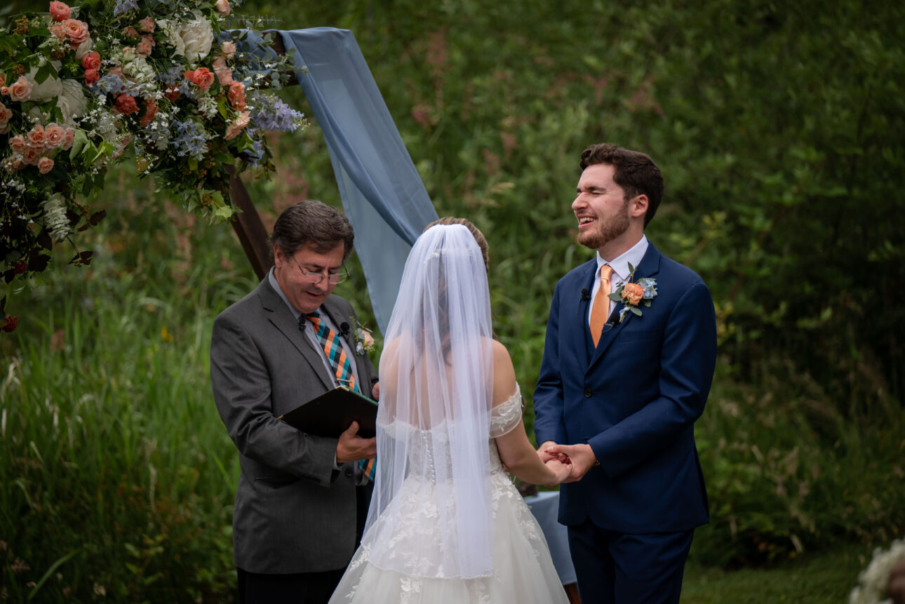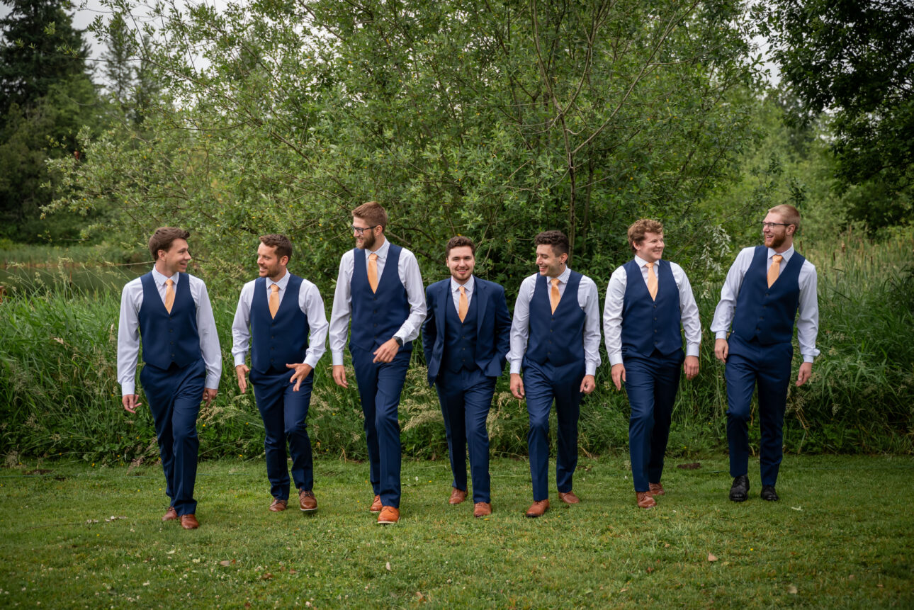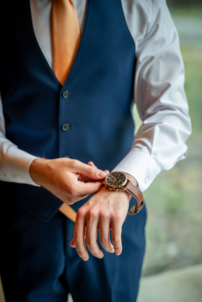 The rain followed me the entire drive, steady and relentless, until the moment I arrived. Almost on cue, it softened into a mist and then disappeared completely just in time for their first look. By the time they saw each other, the air was calm and the rain had disappeared, leaving behind the freshest scent and a crisp, clear backdrop for their love story. As a Pacific Northwest Wedding Photographer, these are the moments I live for — when the weather shifts just enough to feel like part of the story rather than a challenge. While we moved into formal portraits the groomsmen dried off the morning rain from the ceremony chairs behind me. I love that busy wedding energy, when everything in front of my lens looks immaculate and completely romantic because behind me a community is rallying together.