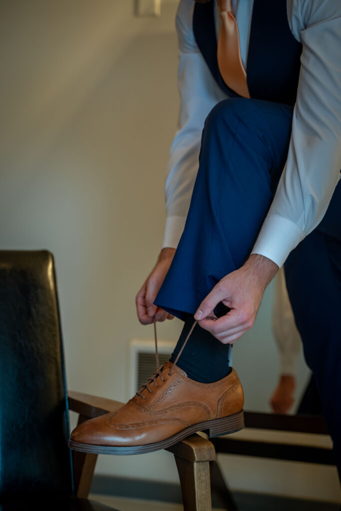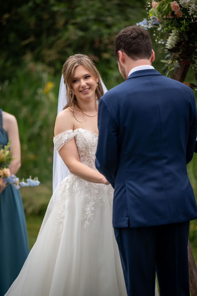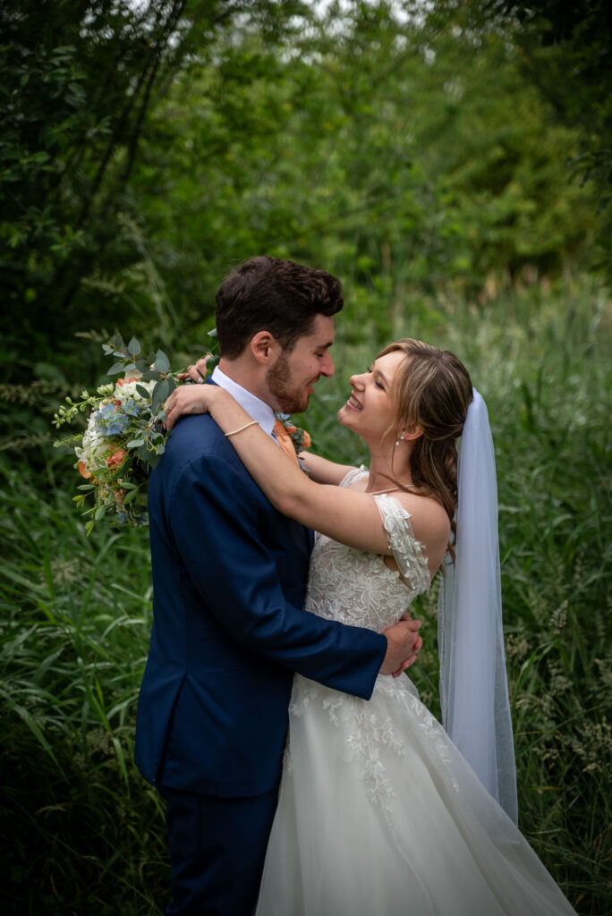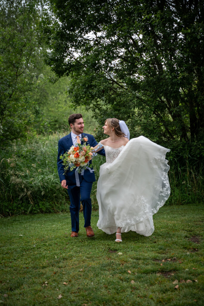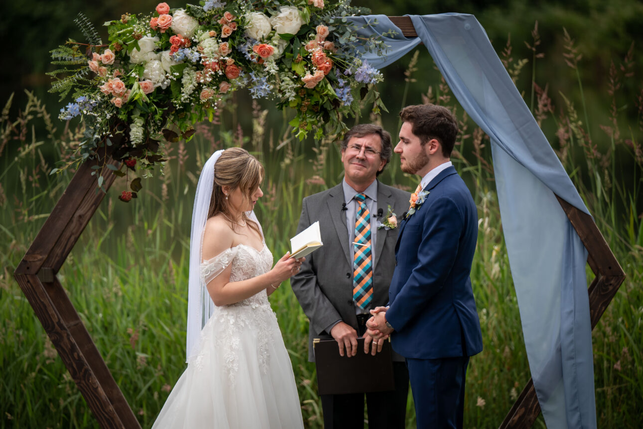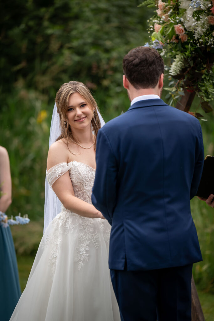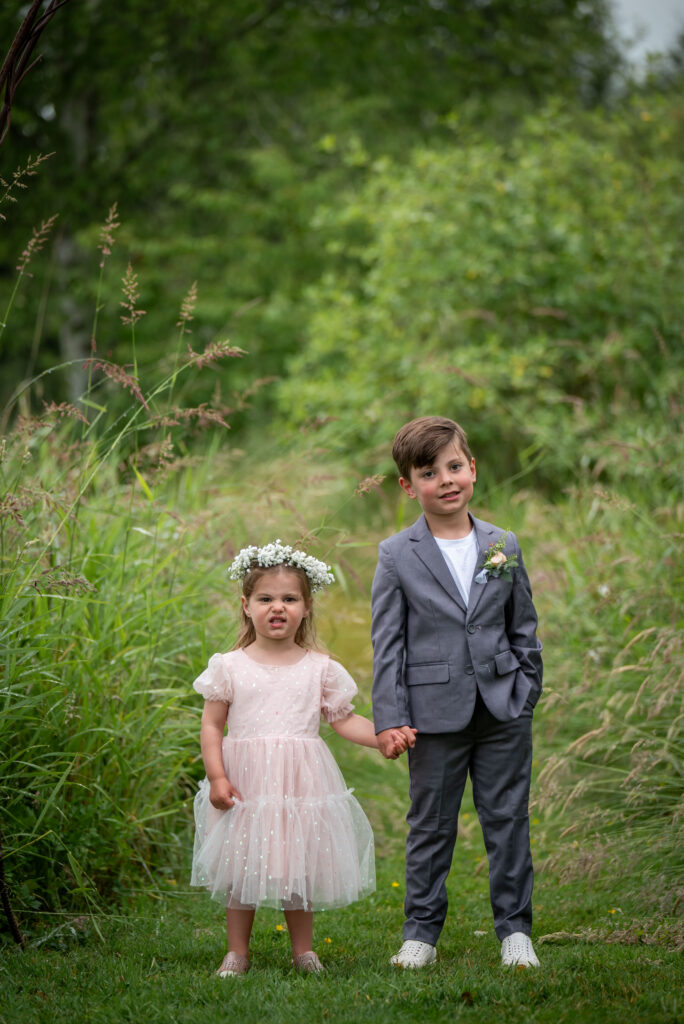 The rain followed me the entire drive, steady and relentless, until the moment I arrived. Almost on cue, it softened into a mist and then disappeared completely just in time for their first look. By the time they saw each other, the air was calm and the rain had disappeared, leaving behind the freshest scent and a crisp, clear backdrop for their love story. As a Pacific Northwest Wedding Photographer, these are the moments I live for — when the weather shifts just enough to feel like part of the story rather than a challenge. While we moved into formal portraits the groomsmen dried off the morning rain from the ceremony chairs behind me. I love that busy wedding energy, when everything in front of my lens looks immaculate and completely romantic because behind me a community is rallying together.