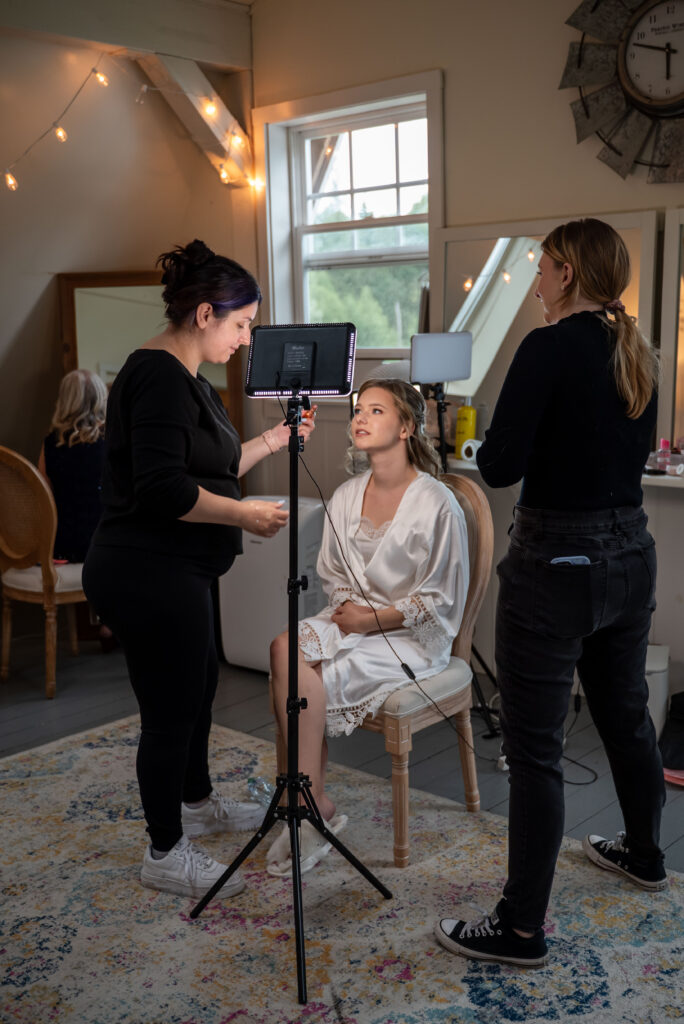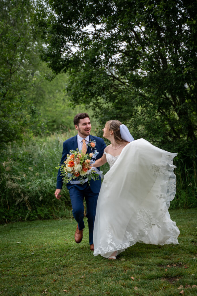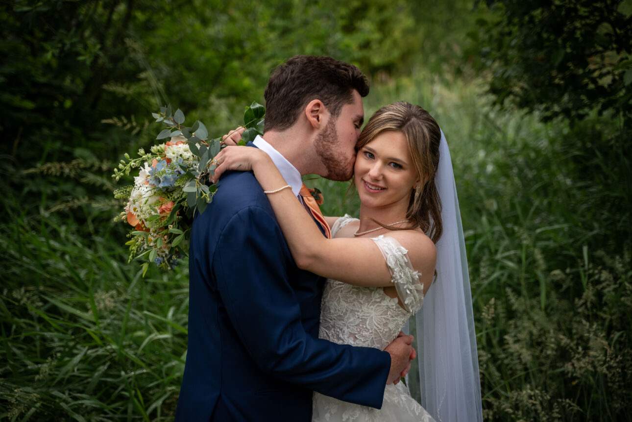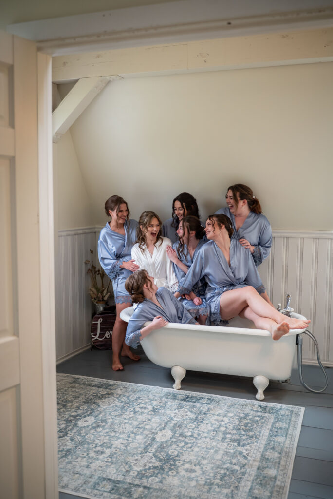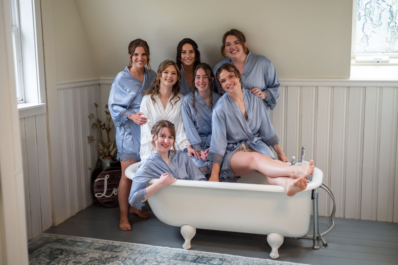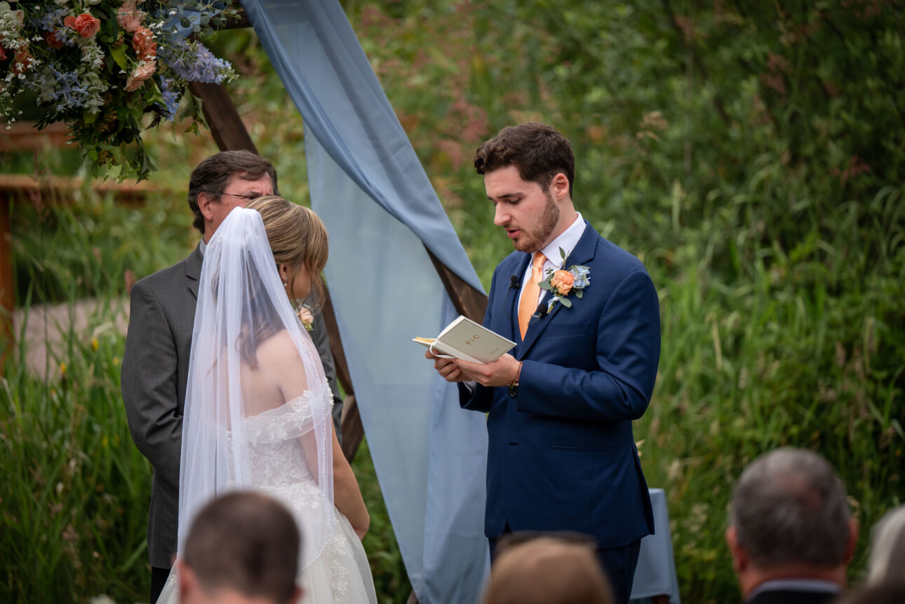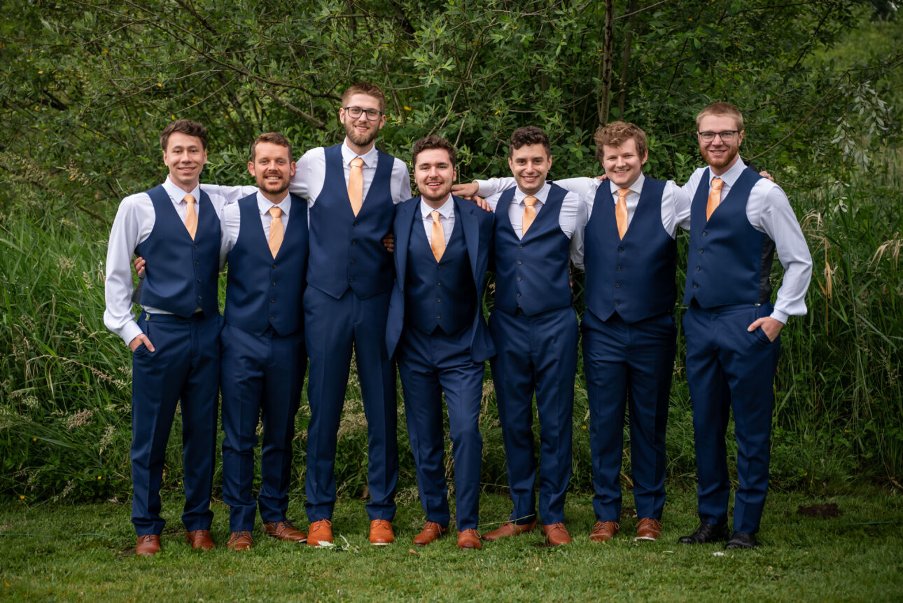 The rain followed me the entire drive, steady and relentless, until the moment I arrived. Almost on cue, it softened into a mist and then disappeared completely just in time for their first look. By the time they saw each other, the air was calm and the rain had disappeared, leaving behind the freshest scent and a crisp, clear backdrop for their love story. As a Pacific Northwest Wedding Photographer, these are the moments I live for — when the weather shifts just enough to feel like part of the story rather than a challenge. While we moved into formal portraits the groomsmen dried off the morning rain from the ceremony chairs behind me. I love that busy wedding energy, when everything in front of my lens looks immaculate and completely romantic because behind me a community is rallying together.