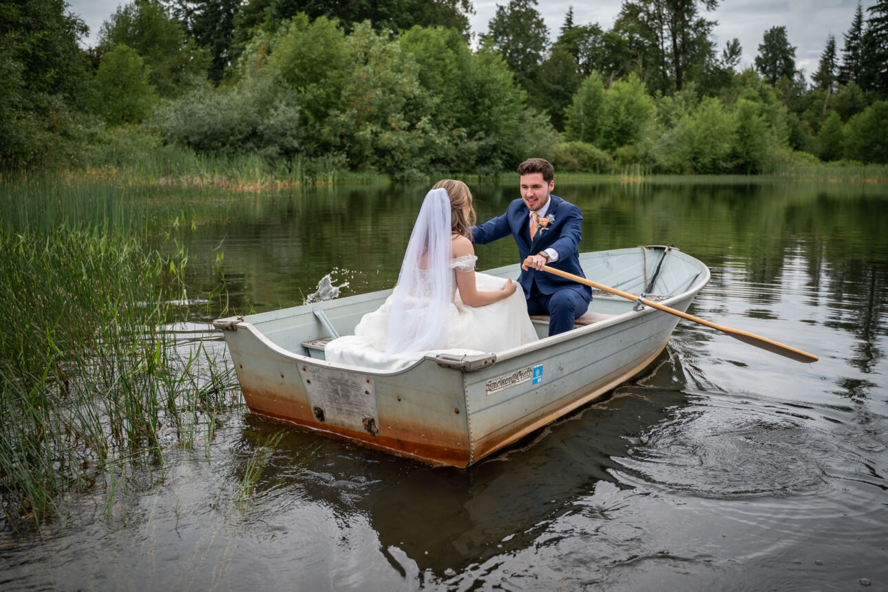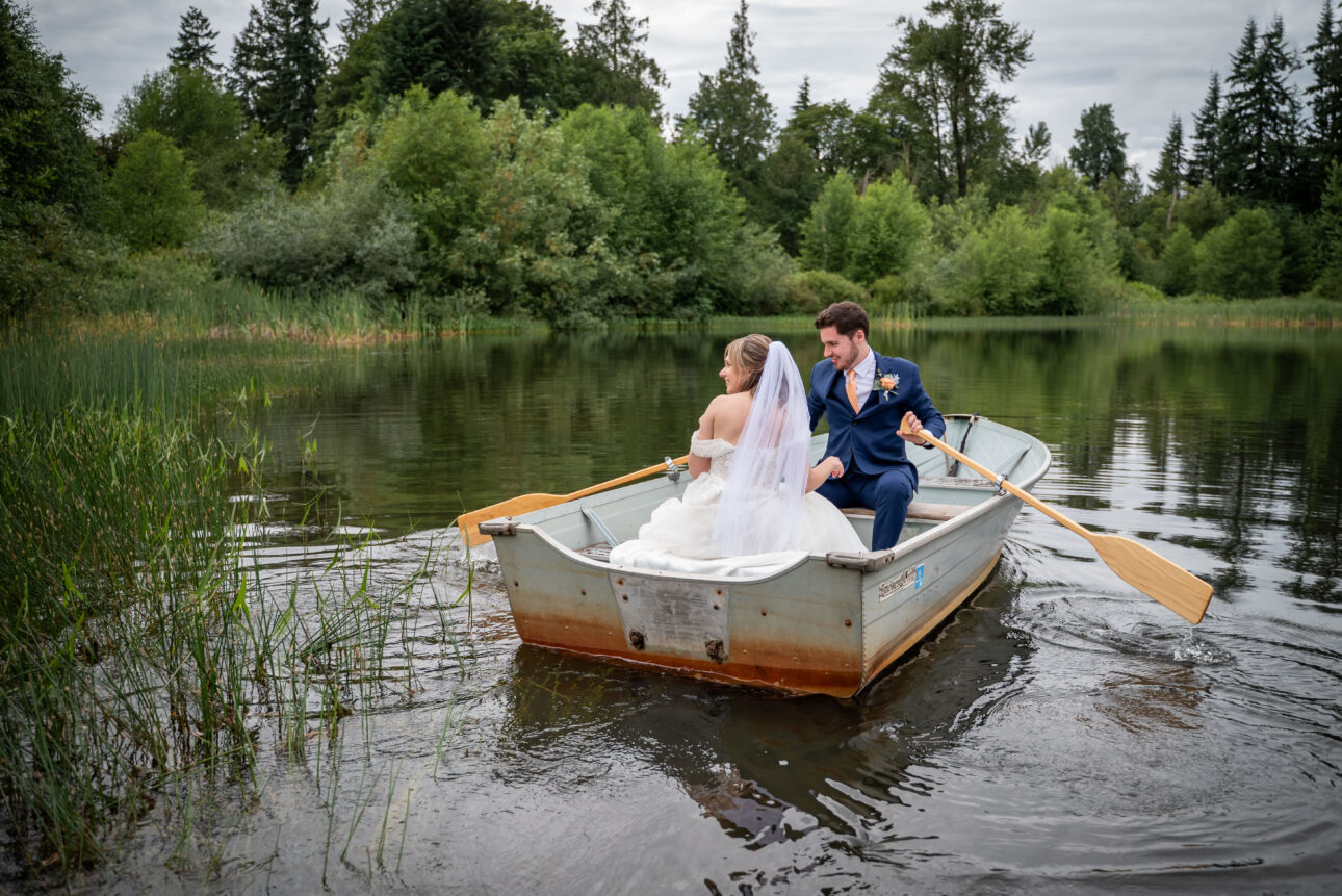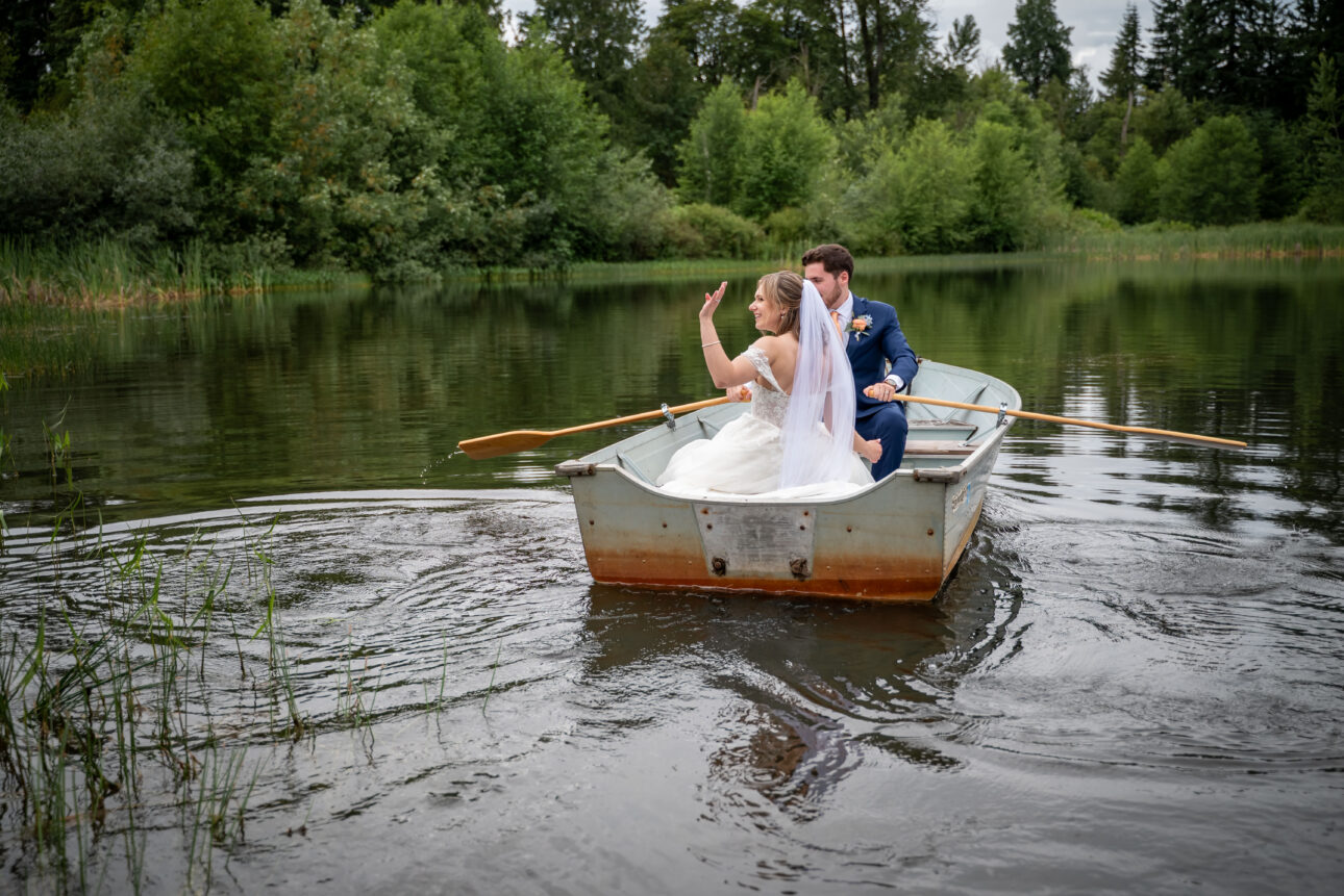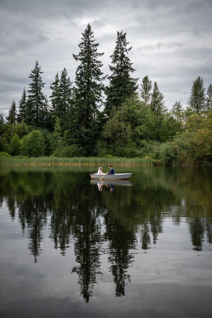 There was no stopping this couple from climbing into the boat on the property, and honestly, I was so excited they did! The water was glassy and clear, creating reflections that felt almost unreal. Dinner and cake were shared outdoors before the celebration moved inside for dancing, where I stayed long enough to capture the formal dances before heading out. By then, the rain had returned, gently tapping along the drive home. It was one of those perfectly imperfect Pacific Northwest days, where the rain doesn’t ruin anything — it just shows up like it always has, cleansing, nourishing and welcoming new life. I couldn’t think of a better way to start a new chapter and commitment.