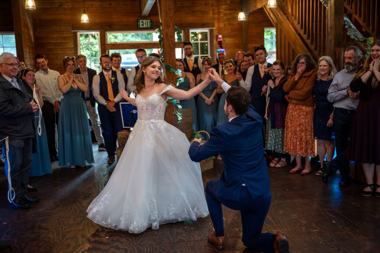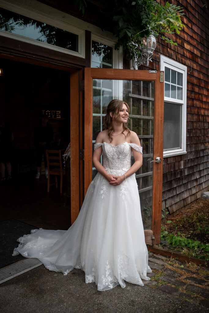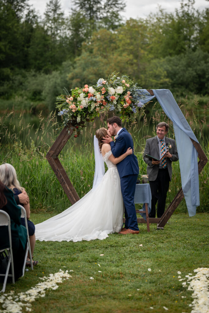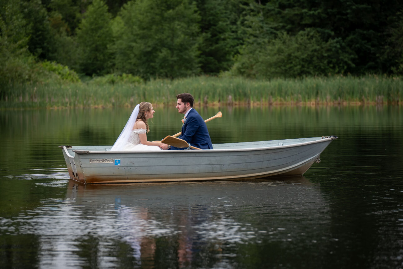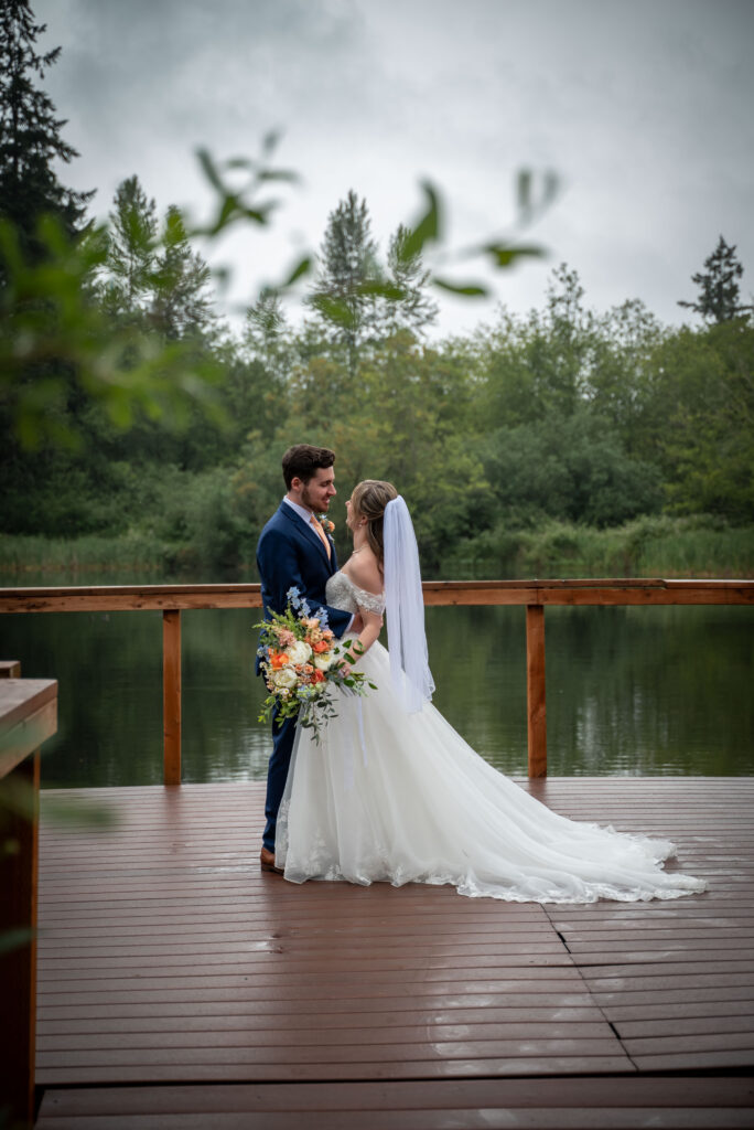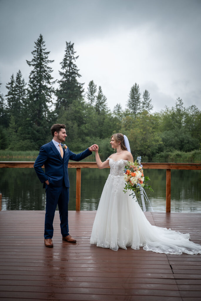 There was no stopping this couple from climbing into the boat on the property, and honestly, I was so excited they did! The water was glassy and clear, creating reflections that felt almost unreal. Dinner and cake were shared outdoors before the celebration moved inside for dancing, where I stayed long enough to capture the formal dances before heading out. By then, the rain had returned, gently tapping along the drive home. It was one of those perfectly imperfect Pacific Northwest days, where the rain doesn’t ruin anything — it just shows up like it always has, cleansing, nourishing and welcoming new life. I couldn’t think of a better way to start a new chapter and commitment.