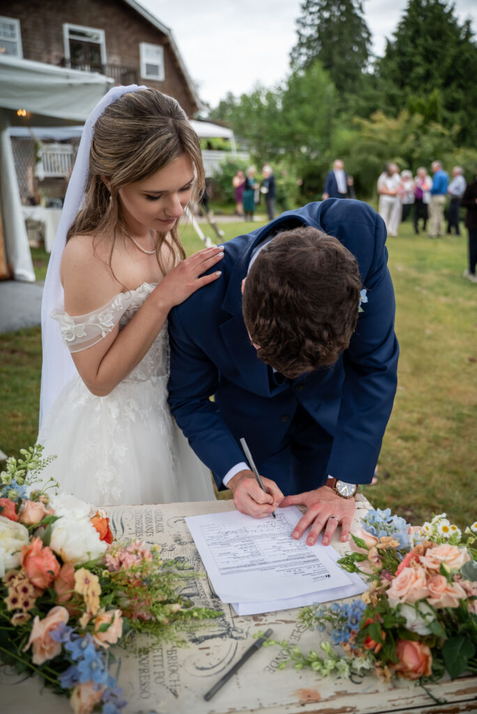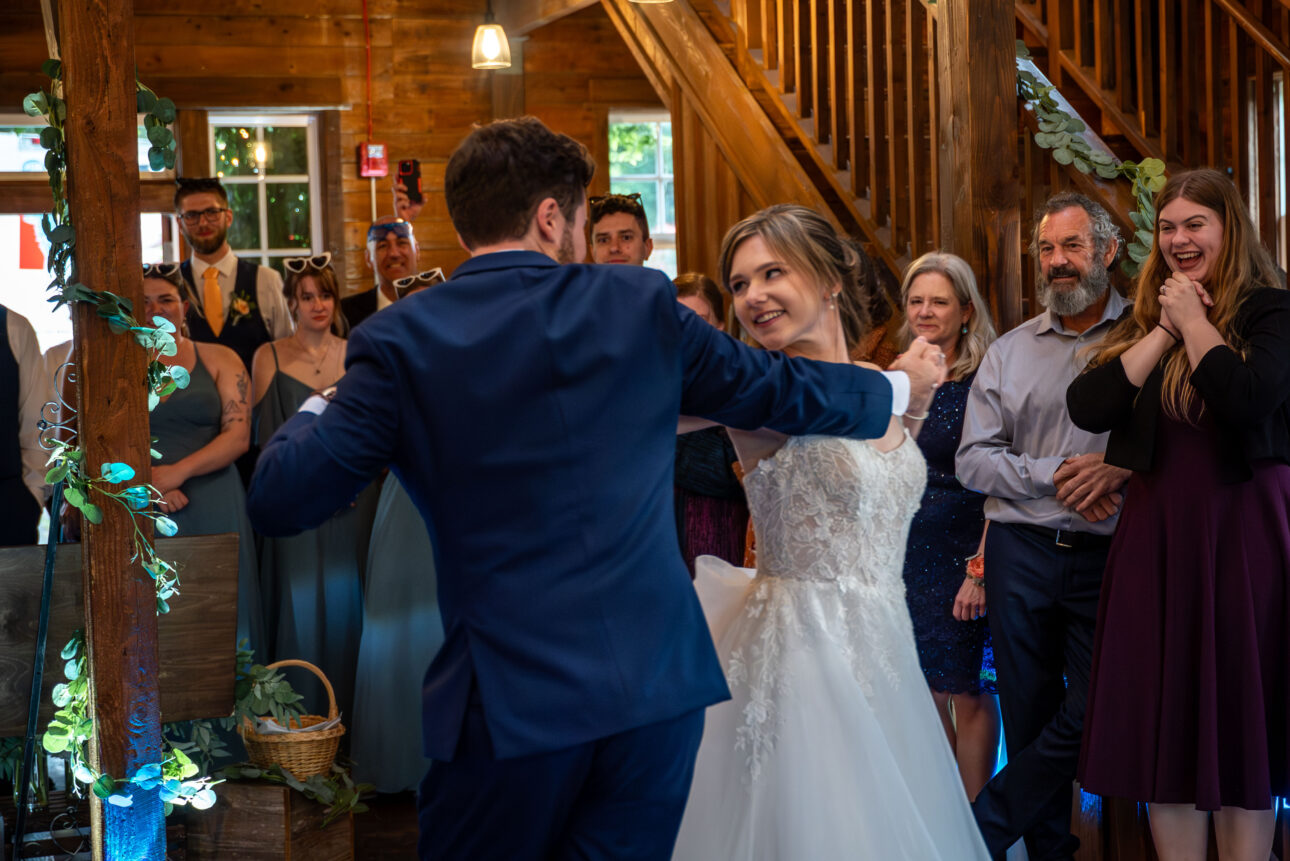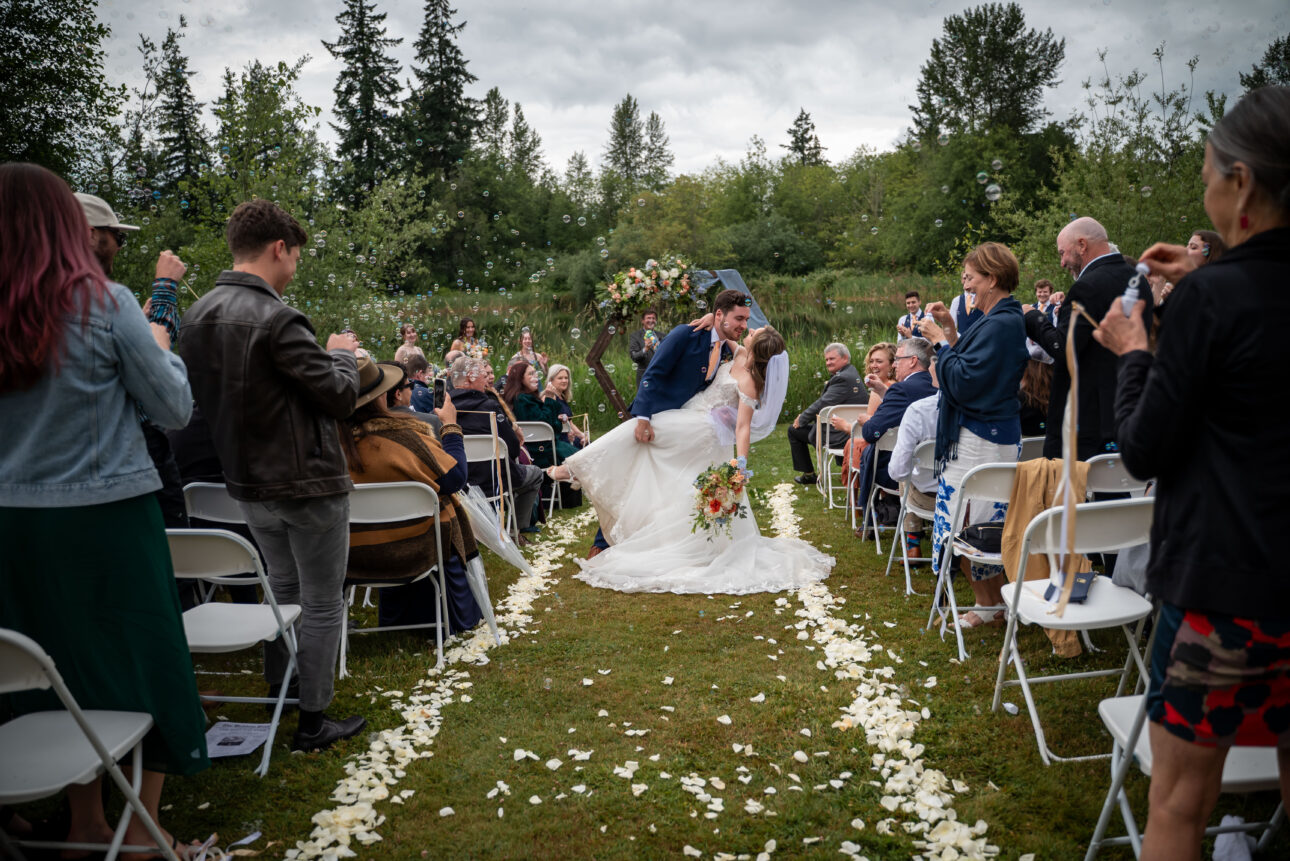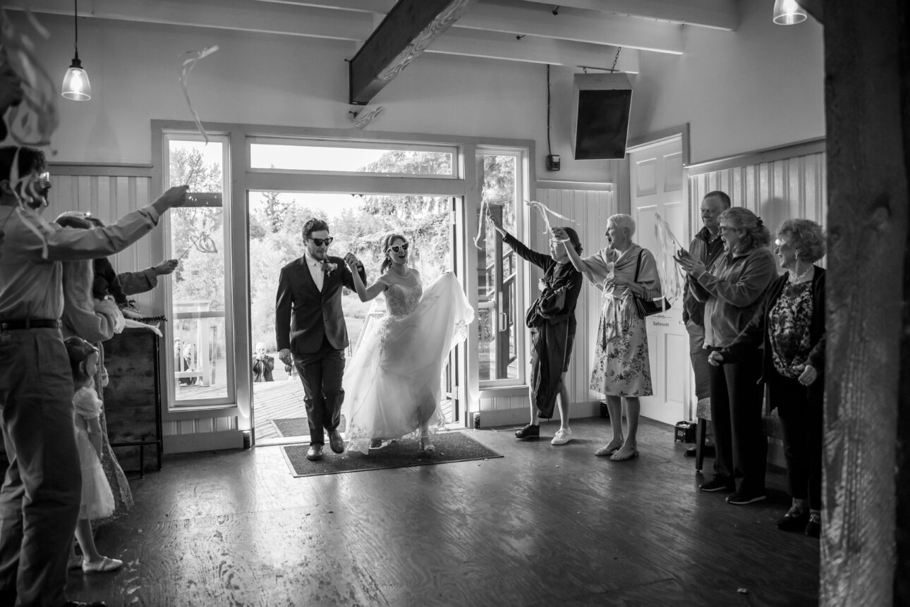 There was no stopping this couple from climbing into the boat on the property, and honestly, I was so excited they did! The water was glassy and clear, creating reflections that felt almost unreal. Dinner and cake were shared outdoors before the celebration moved inside for dancing, where I stayed long enough to capture the formal dances before heading out. By then, the rain had returned, gently tapping along the drive home. It was one of those perfectly imperfect Pacific Northwest days, where the rain doesn’t ruin anything — it just shows up like it always has, cleansing, nourishing and welcoming new life. I couldn’t think of a better way to start a new chapter and commitment.