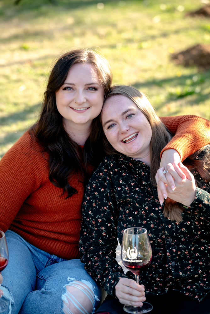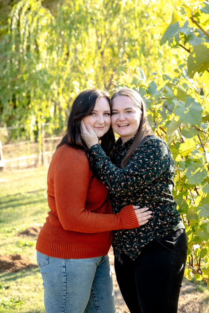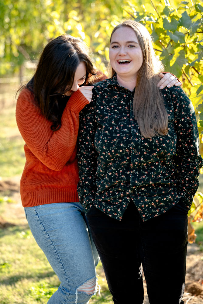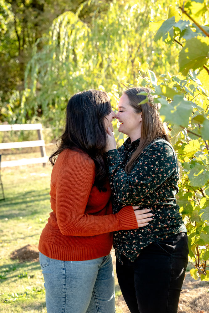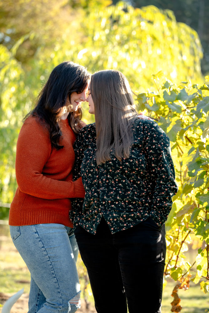 I pulled up the the Carpenter Creek Winery on a bright and beautiful fall day. Nestled in the hills of Forest Grove this is a favorite place for Anjie & Nicollette. As a couple they’ve spent many summer nights enjoying a glass of wine amongst the grapes. Anjie and Nicolette are both incredibly warm and friendly, which made the session feel effortless and full of genuine moments. Their connection really shines through in the photos, and the winery setting complemented their laid-back, joyful energy perfectly.