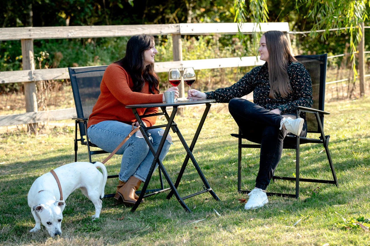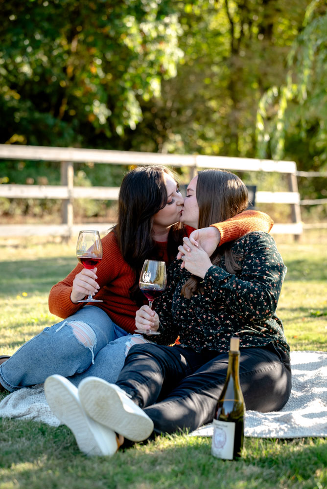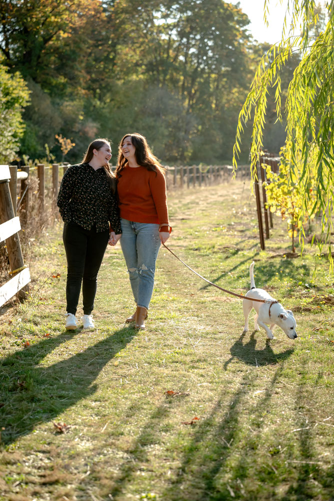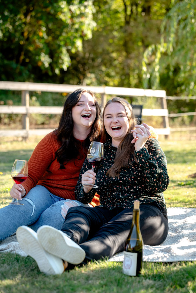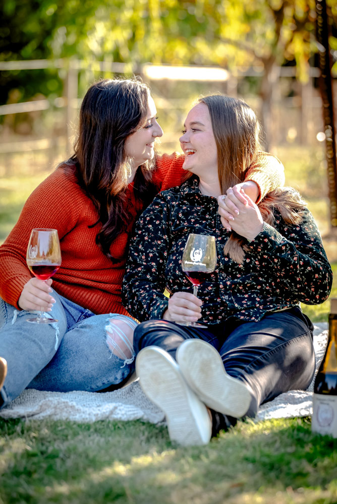 I pulled up the the Carpenter Creek Winery on a bright and beautiful fall day. Nestled in the hills of Forest Grove this is a favorite place for Anjie & Nicollette. As a couple they’ve spent many summer nights enjoying a glass of wine amongst the grapes. Anjie and Nicolette are both incredibly warm and friendly, which made the session feel effortless and full of genuine moments. Their connection really shines through in the photos, and the winery setting complemented their laid-back, joyful energy perfectly.
