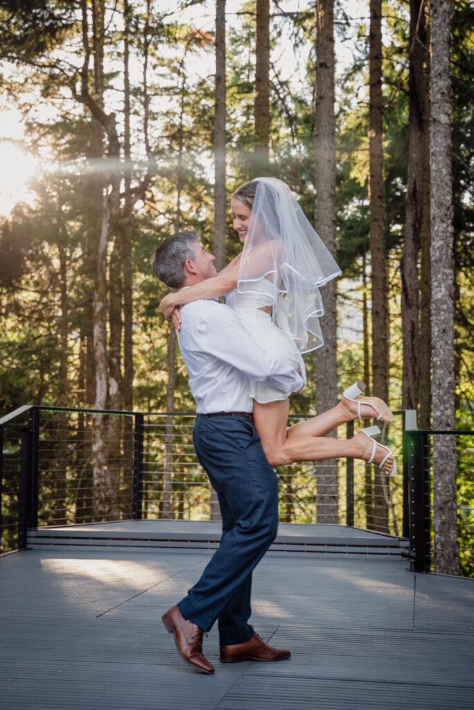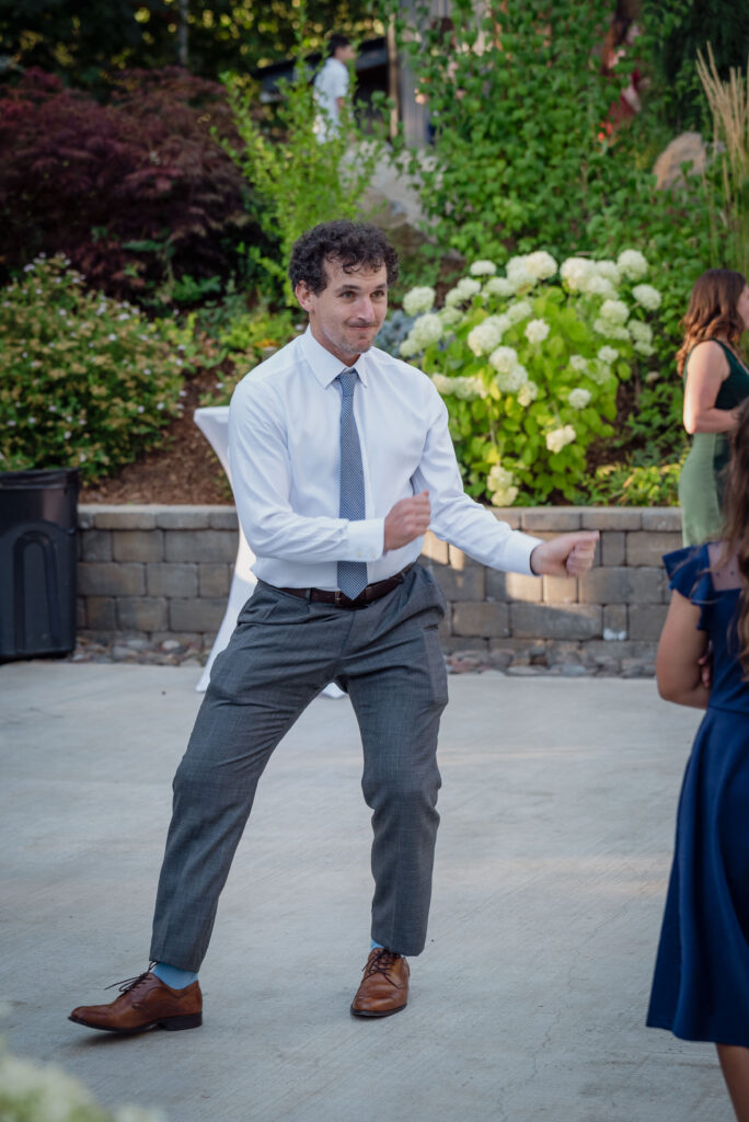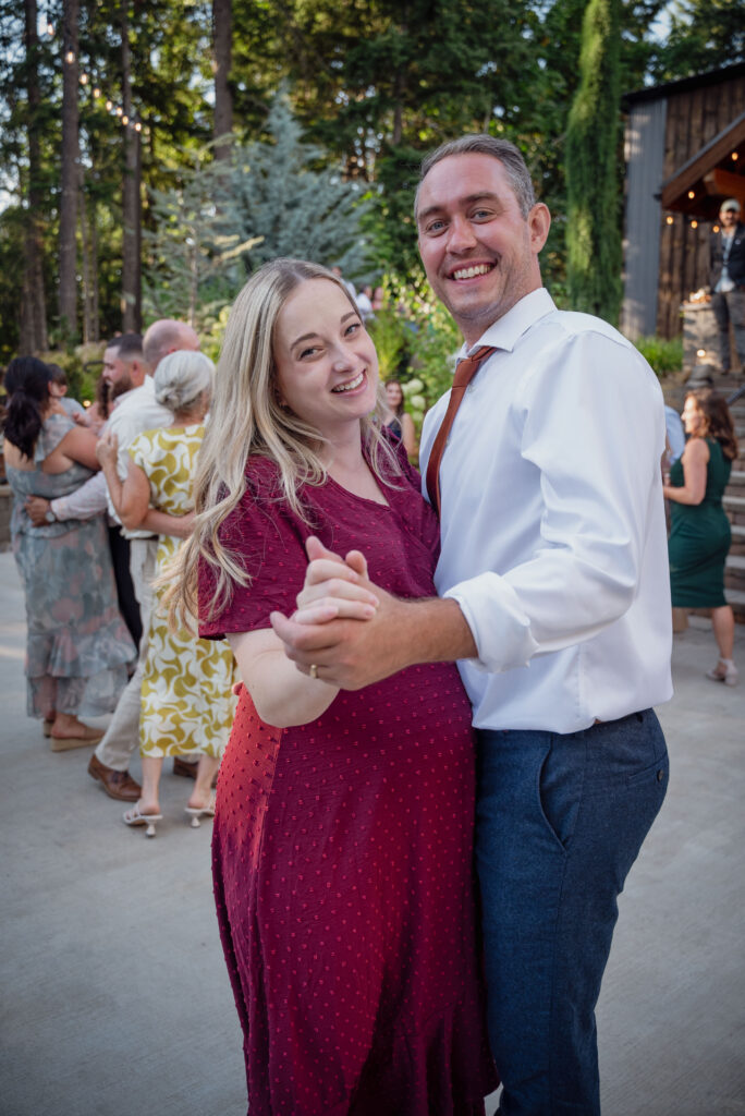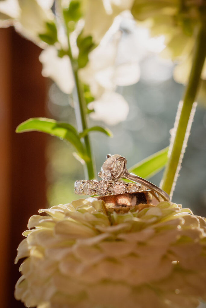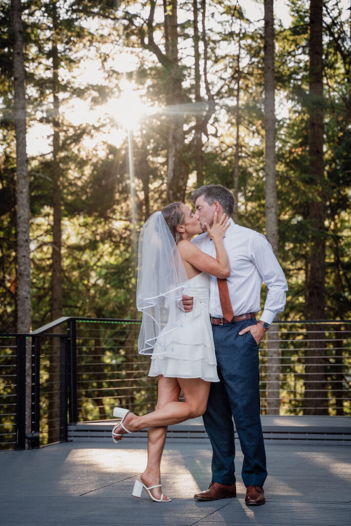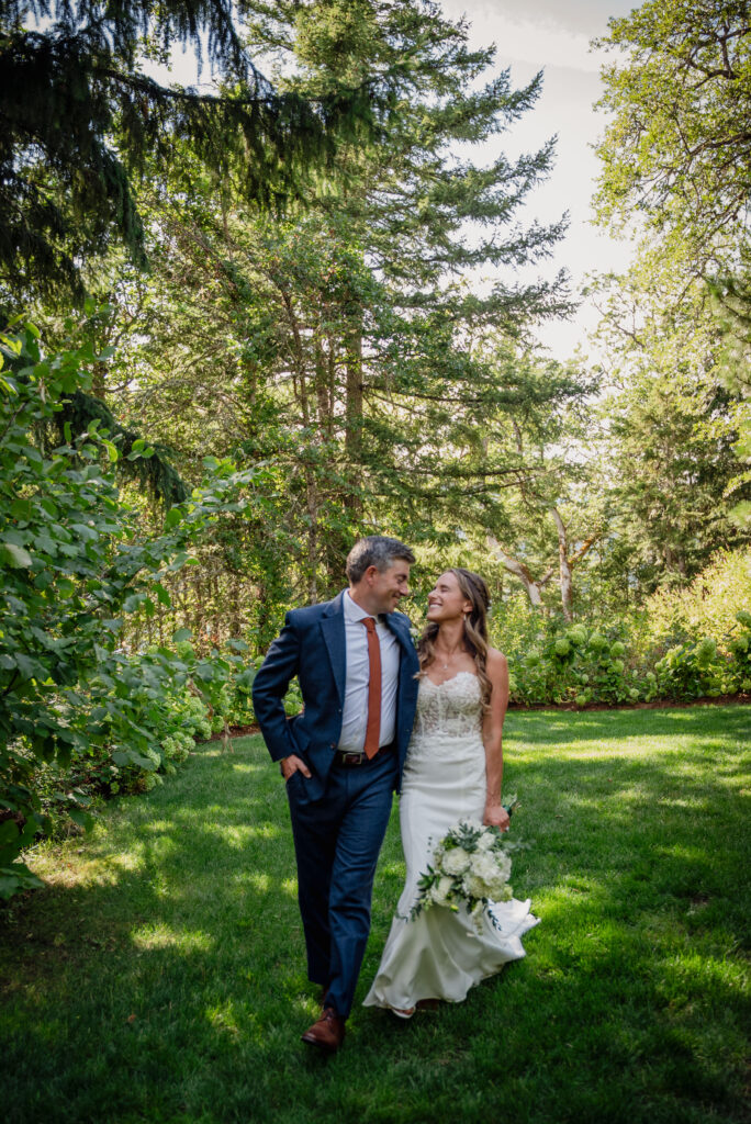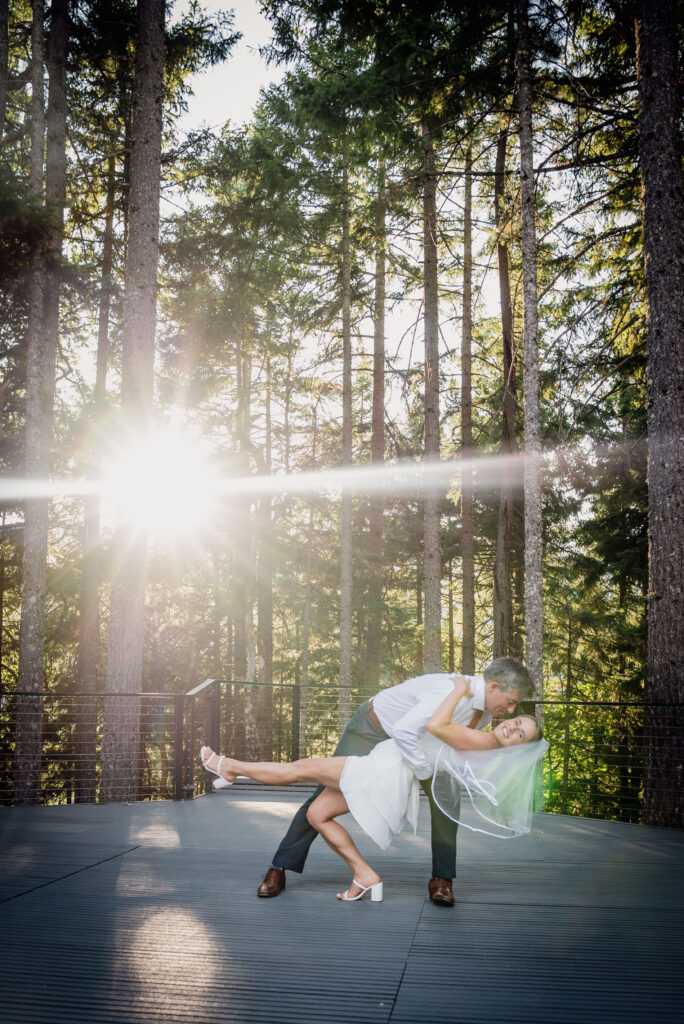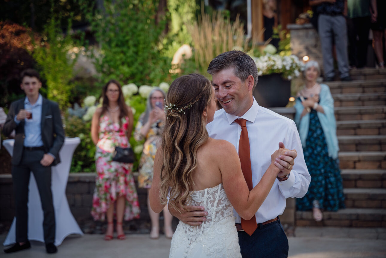 During the reception, I glanced toward the tree line and saw that golden hour light just beginning to glow behind it. I immediately went searching for the couple. Once I found them, we slipped off the dance floor and made our way to some beautiful bushes in full bloom—and just like that, golden hour was officially on.