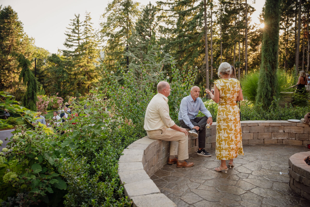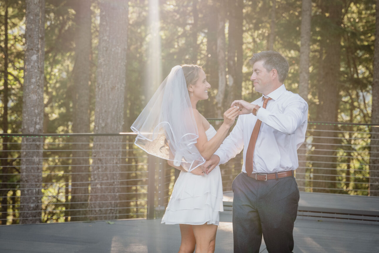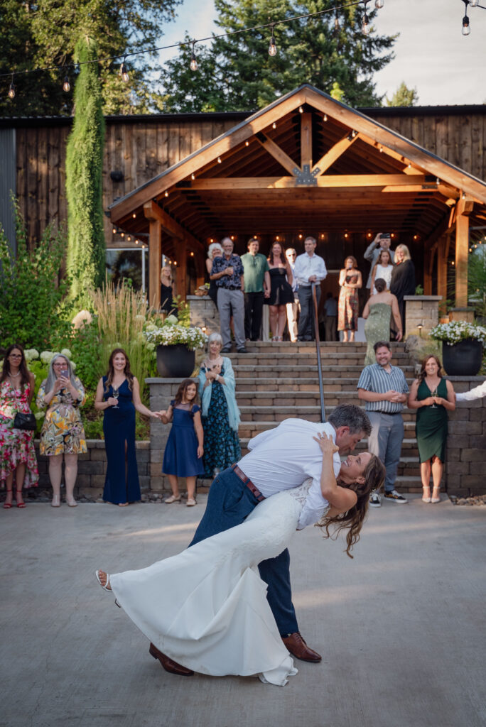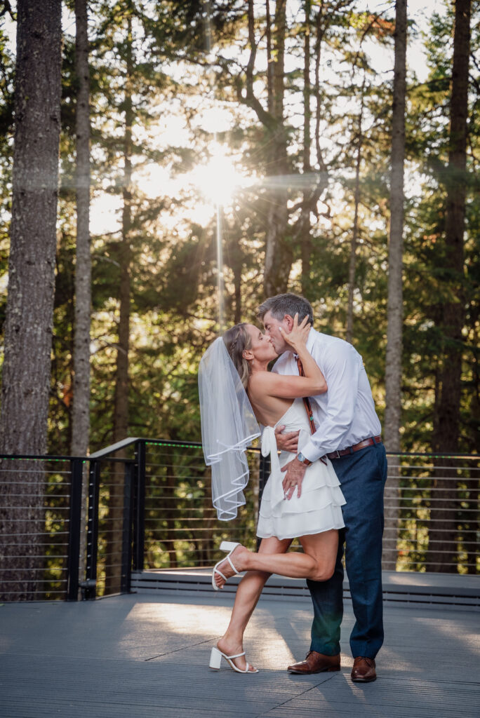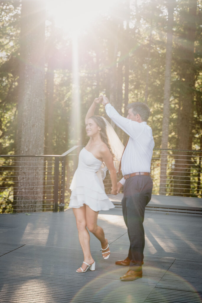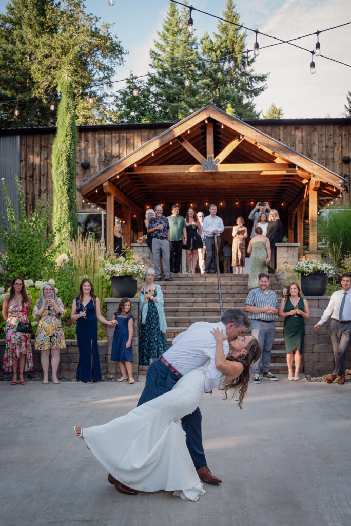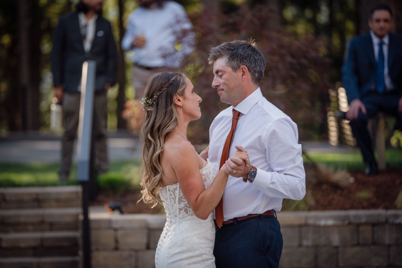 During the reception, I glanced toward the tree line and saw that golden hour light just beginning to glow behind it. I immediately went searching for the couple. Once I found them, we slipped off the dance floor and made our way to some beautiful bushes in full bloom—and just like that, golden hour was officially on.