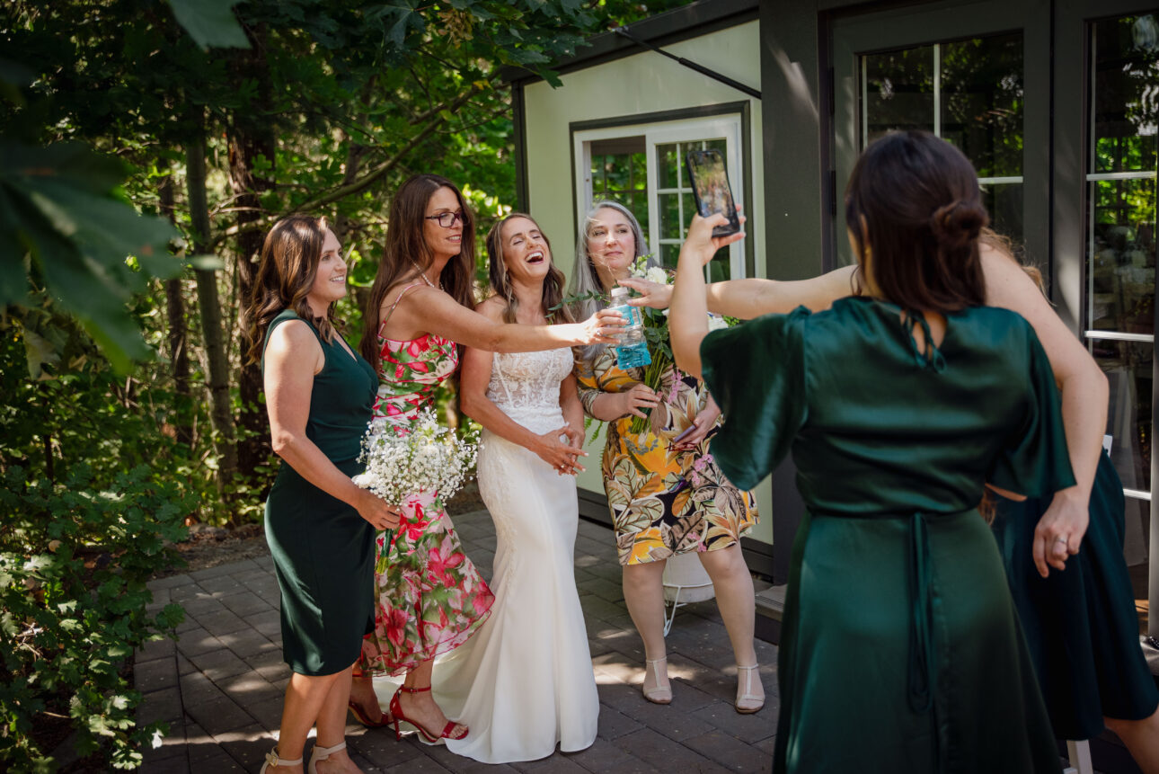 After capturing a few portraits, I couldn’t bring myself to waste that dreamy light. I turned around and saw most of the bridesmaids had gathered nearby. Perfect timing. We had already taken bridal party photos earlier in the day, but when you have light like that (and your best friends all together), why not take a few more?