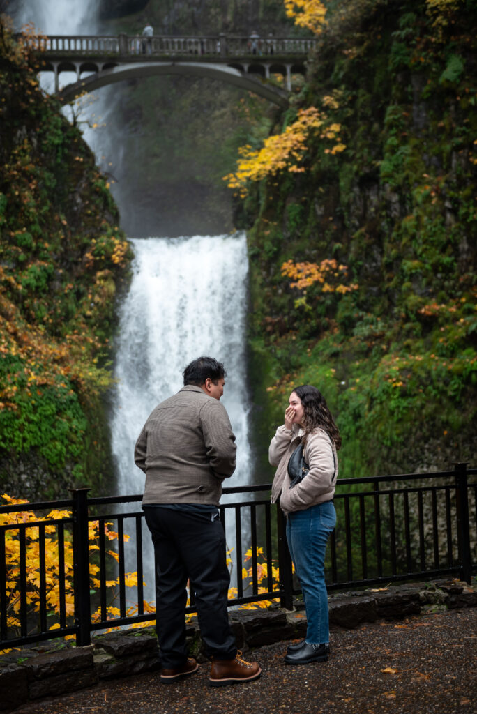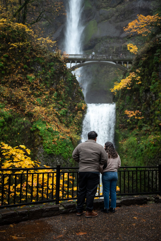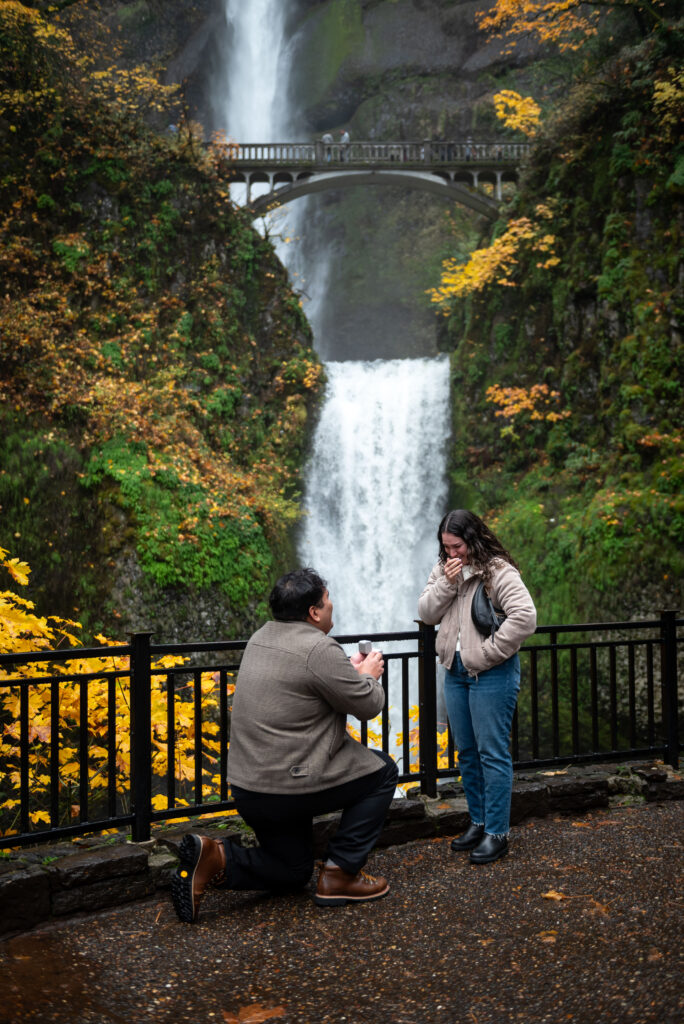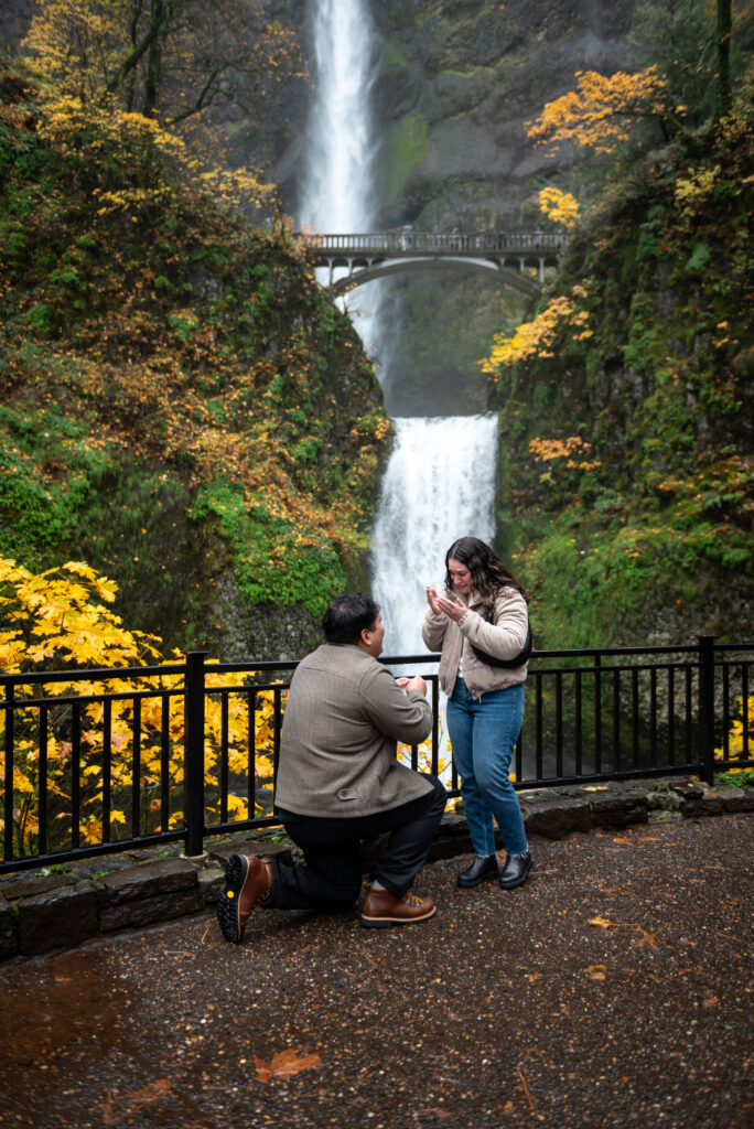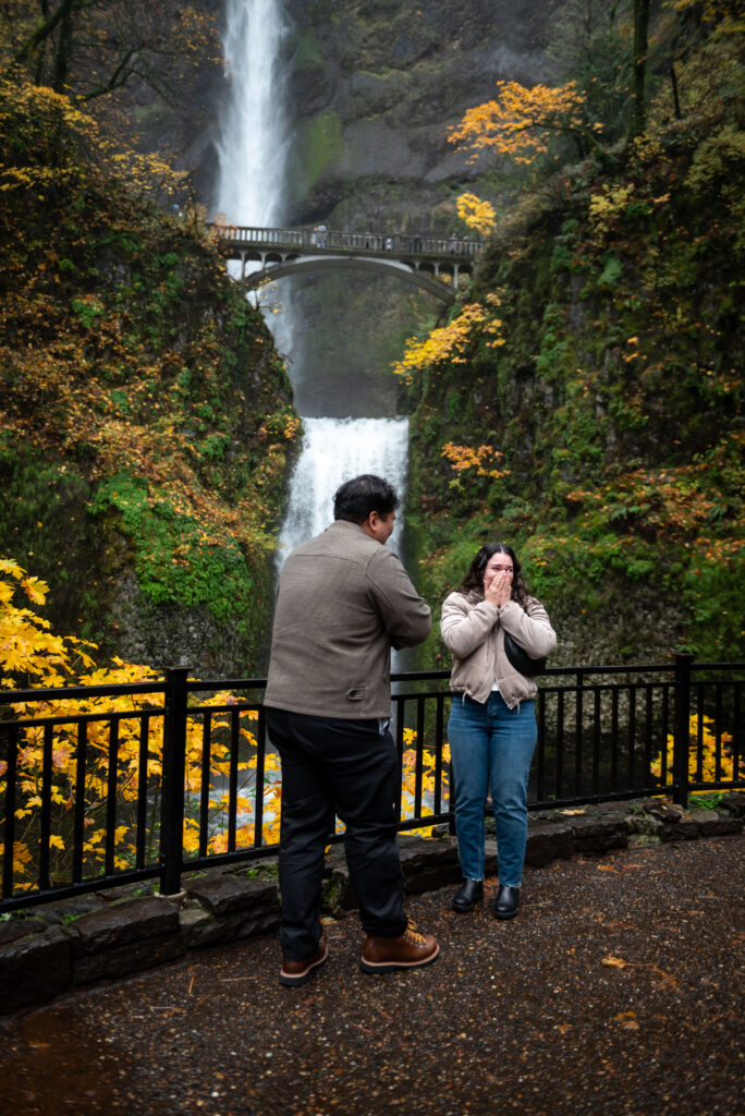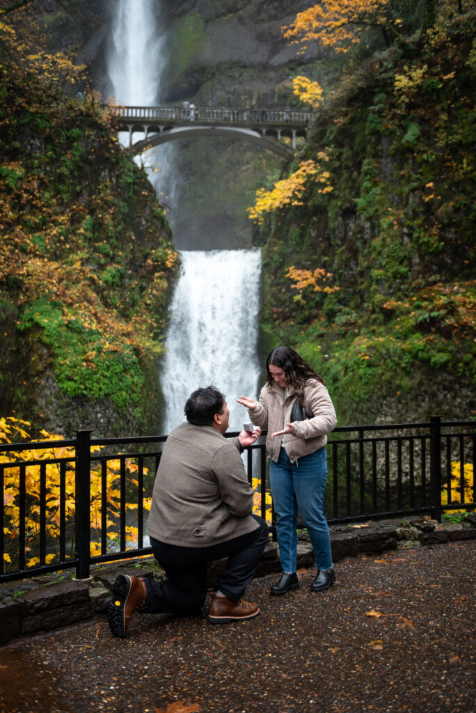 Last fall, I had the absolute joy of helping plan and photograph a surprise wedding proposal at Multnomah Falls for Alfonso and Ali, and it was nothing short of magical. While organizing a weekend getaway to Oregon from California, Alfonso reached out to me and we began to coordinate every detail so the moment would be seamless. I arrived early at Multnomah Falls and blended in as a casual visitor waiting for the perfect moment. When I finally spotted Alfonso and Ali walking up to the falls, my heart was racing, right along with his I’m sure. Anticipating the second he dropped to one knee was incredibly exciting, and capturing Ali’s surprised, emotional reaction against the iconic waterfall backdrop was unforgettable.