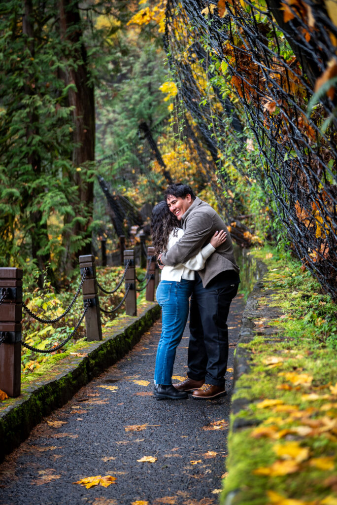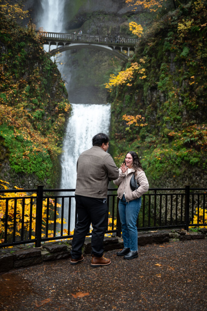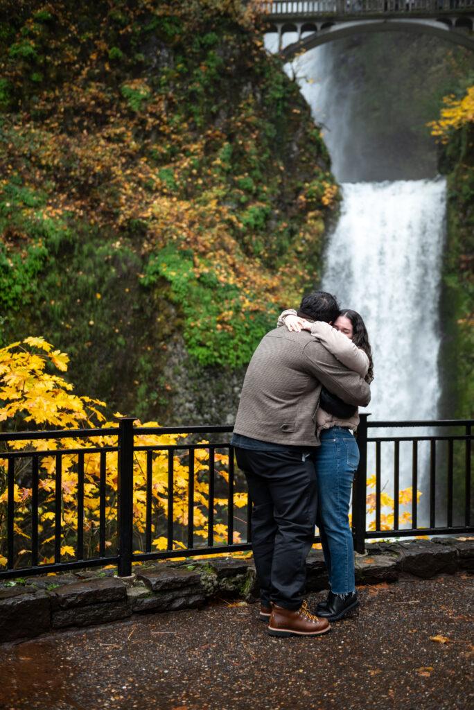 After the big “yes!” and plenty of happy congratulations, we celebrated with a short hike up to the bridge for a fun, relaxed engagement photo session at Multnomah Falls. The misty air, towering cliffs, and genuine joy between them made for stunning photos and a truly wonderful afternoon. I loved being part of such a meaningful milestone, from planning to photographing the proposal itself. Helping couples create and preserve moments like this is one of my favorite things to do, and I’d love to work with more clients looking for a surprise proposal photographer in Oregon, especially at epic locations like Multnomah Falls. If you’re dreaming of a perfectly planned proposal with beautiful, authentic photos to remember it by, I’m here to help make it happen.