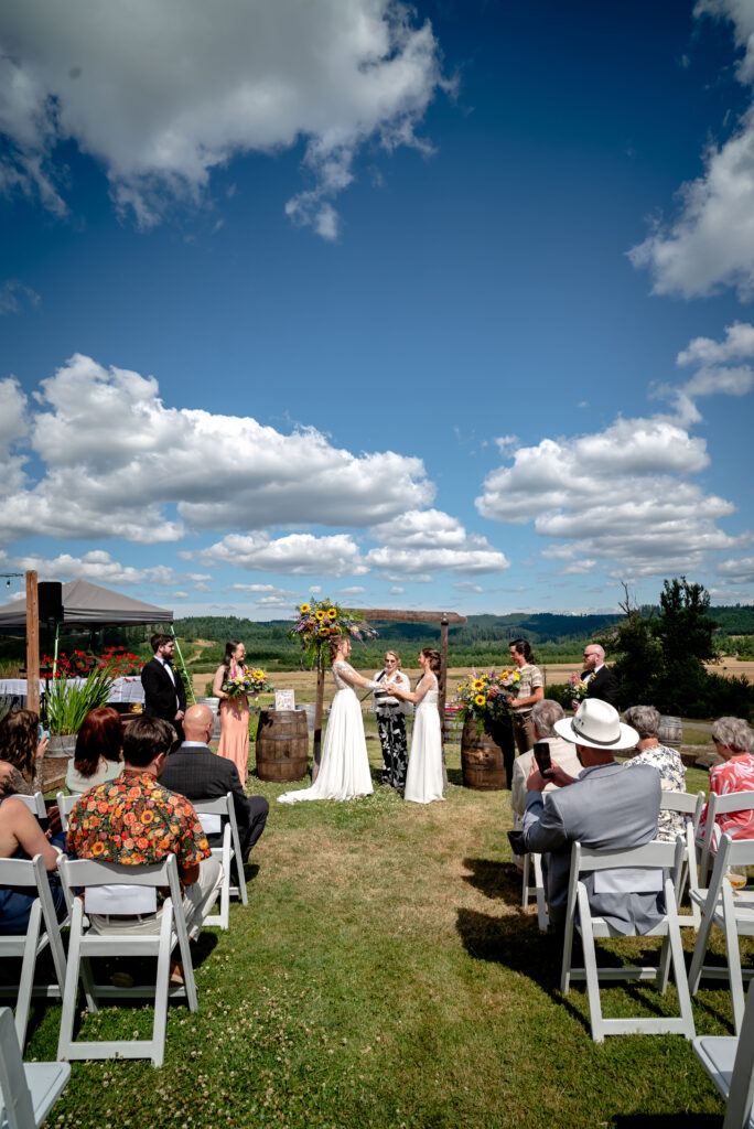 Surrounded by loved ones, Kate and Miranda said “I do” overlooking the scenic beauty of Eugene, Oregon at Alesong Brewing & Blending. Their summer wedding was filled with laughter, golden sunflowers, and sweeping views that made the day feel especially magical.
